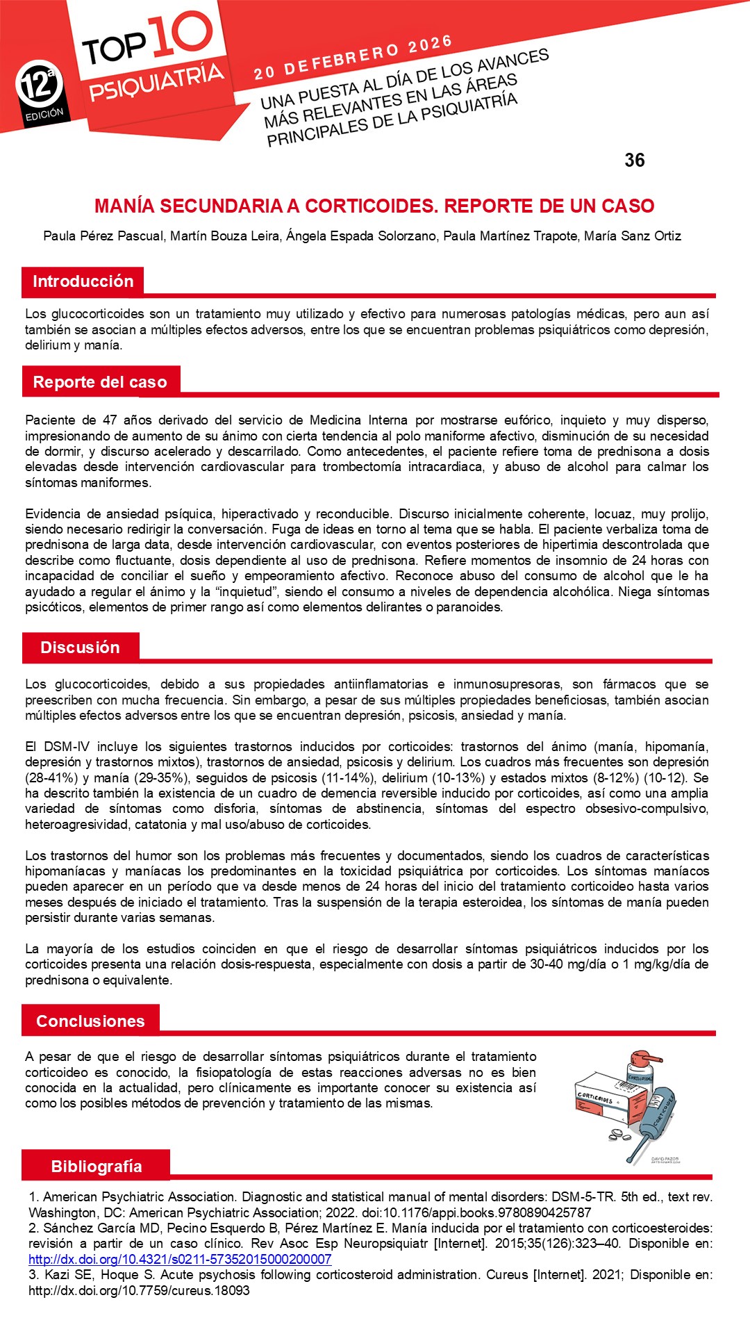 Usted va a votar como Mejor póster informativo: "MANÍA SECUNDARIA A CORTICOIDES. REPORTE DE UN CASO.".