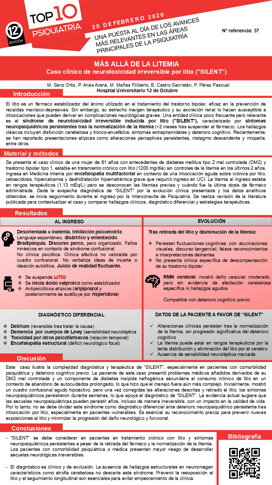Usted va a votar como Mejor póster informativo: "Más allá de la litemia. Caso clínico de neurotoxicidad irreversible por litio ("SILENT").".