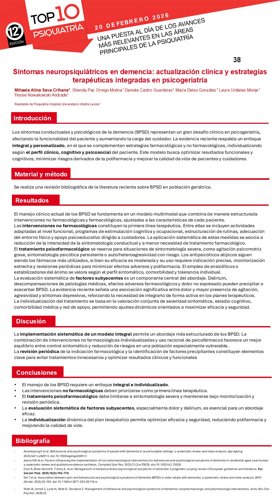 Usted va a votar como Mejor póster informativo: "Síntomas neuropsiquiátricos en demencia: actualización clínica y estrategias terapéuticas integradas en psicogeriatría".